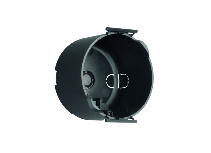 Krabička zásuvky nebo vypínače Schuko. Vývod 1x kabel. Montážní ø 49,5 mm, montážní hloubka 35 mm.
