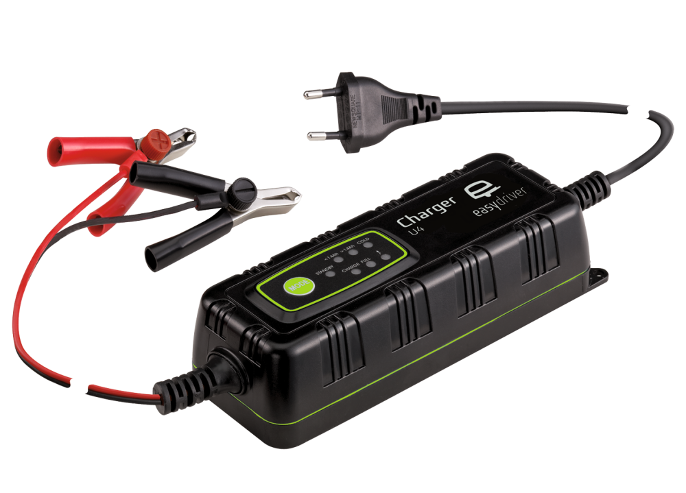 Tři volitelné režimy nabíjení zajišťují šetrné nabíjení pro různé baterie a nízké teploty. Nabíjení dle charakteristiky IUoU. Ochrana proti přepólování a zkratu.