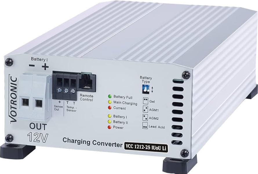 Nabíjecí převodník VCC pro instalaci do vozidla. Optimální nabíjení baterie za jízdy. Palubní baterii napájí alternátor a i při delších cestách není plně nabitá. Důvodem jsou dlouhé kabelové trasy, malé průřezy kabelů a velmi rozdílné stavy nabití startéru a palubních baterií. Kromě toho musí být během jízdy zásobovány různé spotřebiče. Nabíjecí měniče VOTRONIC poskytují řešení, nabíjejí palubní baterii rychle a šetrným způsobem v souladu se specifikacemi výrobce baterie. Dokonce i při krátkých jízdách se baterie nabíjí plným nabíjecím proudem. Ztráty přes dlouhé nabíjecí kabely ve velkých vozidlech a kolísání napětí alternátoru (Euro 6) jsou kompenzovány. Vozidla s palubním napětím 12 V a 24 V jsou optimální volbou pro toto zařízení. Samozřejmě galvanicky oddělené. Tím se zabrání průrazu napětí v případě poruchy, nežádoucímu zpětnému vybíjení a potlačení poruch v palubní elektrické soustavě. Kompaktní zařízení nejsou v žádném případě srovnatelná s identickými síťovými nabíječkami. I zde řídí inteligentní mikroprocesor robustní výkonovou elektroniku a zajišťuje optimální nabíjení a bezpečný provoz. 6-stupňová nabíjecí charakteristika lze aplikovat i na klasické olověné, gelové a AGM baterie nebo lze nastavit moderní lithiové LiFePO4 baterie. Připojené spotřebiče jsou automaticky napájeny, i když je palubní síť pod velkým zatížením. Automatická regulace výkonu zajišťuje potřebnou bezpečnost a startovací schopnosti vozidla.
