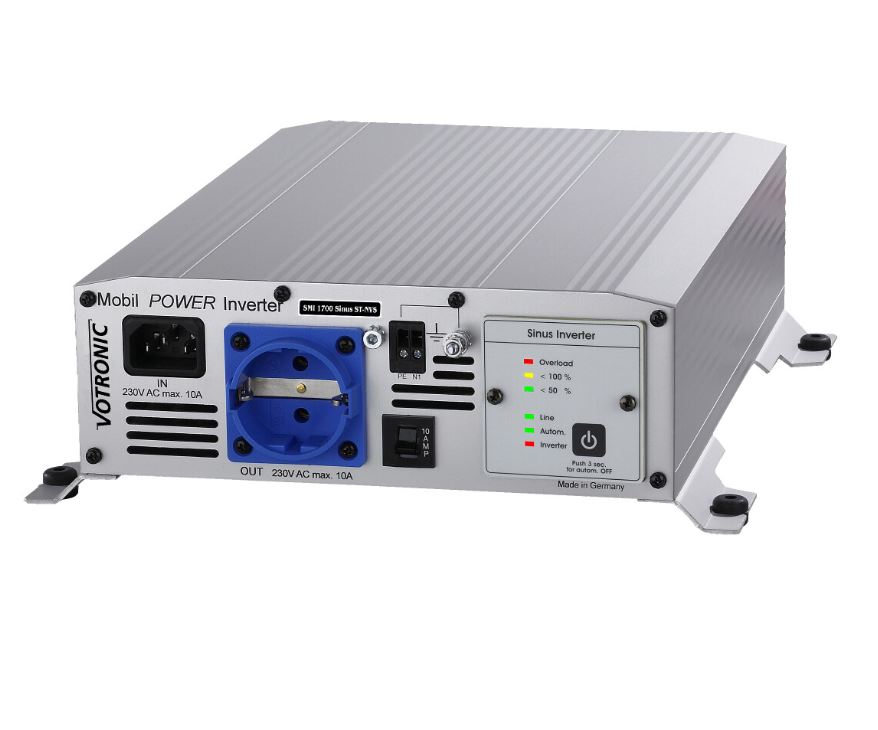 Měniče VOTRONIC dodávají stabilní, čistě sinusové střídavé napětí 230 V/50 Hz a jsou vhodné pro všechny běžné spotřebiče 230 V. Jako zvláštní vlastnost jsou všechny měniče VOTRONIC k dispozici také s integrovaným spínáním priority sítě. Vestavěné bezpečnostní relé zajišťuje, že nedojde ke kolizi mezi dvěma provozními režimy. Pokud je k vozidlu připojeno síťové napájení, vnitřní zásuvky 230 V jsou automaticky napájeny ze sítě a střídač se vypne. Odpojením vozidla ze síťového napájení se střídač automaticky znovu připojí k palubní síti 230 V. Vysoká kvalita měničů VOTRONIC se projevuje nejen bezproblémovým provozem citlivých spotřebičů, ale také velkoryse dimenzovanou výkonovou elektronikou, která poskytuje vysoký špičkový výkon pro zařízení s vysokými rozběhovými proudy. Aby nedošlo ke zbytečnému zatěžování palubní baterie, mají všechny měniče VOTRONIC inteligentní funkci úspory energie, která v závislosti na nastavení automaticky sníží spotřebu energie nebo včas vypíná měnič. Uživatelsky přívětivý ovládací panel zařízení poskytuje nejen informace o aktuálním výkonu a provozním režimu zařízení, ale lze jej také instalovat jako dálkové ovládání na libovolné požadované místo ve vozidle.