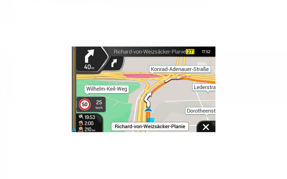 • Jízda v jízdních pruzích, automatický zoom na křižovatkách a kruhových objezdech, inteligentní výpočet alternativních tras atd.