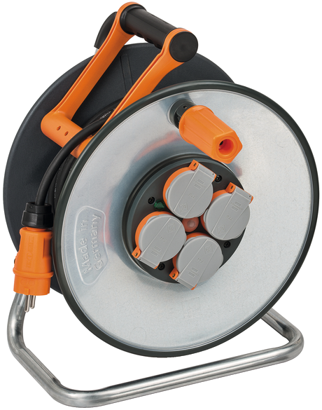 4 zásuvky Schuko 230 V, chráněné proti stříkající vodě IP44, se samouzavíracími kryty. Ochrana proti přehřátí a přetížení.