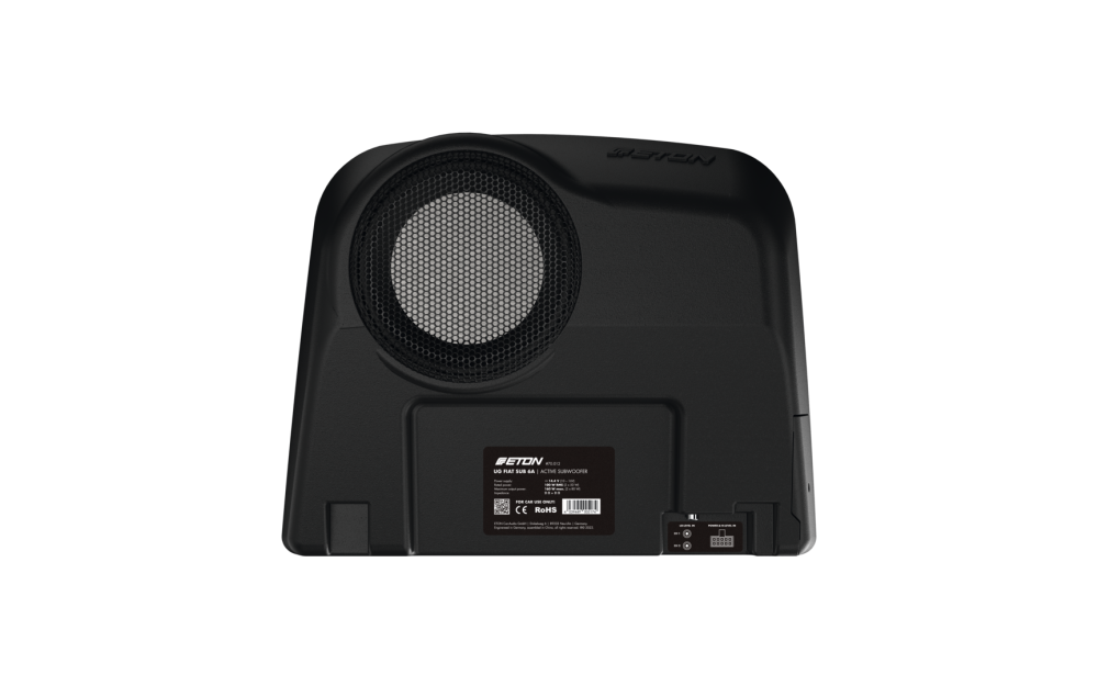 Aktivní subwoofer s technologií Plug & Play pro vozy Fiat Ducato III (řada 7 + 8), Peugeot Boxer II, Citroën Jumper a Dodge Ram Pro Master: FIAT SUB 6A se vyznačuje nově vyvinutým, patentovaným pouzdrem z tlakově litého hliníku, které se perfektně vejde pod středovou konzolu (ve vozidlech s držáky nápojů bez integrované indukční nabíjecí kolébky). 6"/15cm basový reproduktor uvnitř subwooferu je napájen integrovaným zesilovacím modulem s výkonem 160 wattů: dostatečný výkon pro bohaté a energické basy – i ve větších vozidlech. Basový měnič je namontován podle principu down-firing, tj. reproduktor směřuje dolů, aby bylo zajištěno optimální vyzařování a rovnoměrné rozložení basových vln. Součástí je dálkové ovládání úrovně basů.