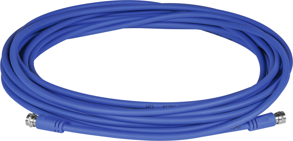 Flexibilní vícevláknový koaxiální kabel. S F-konektory na obou koncích. Barva: modrá.