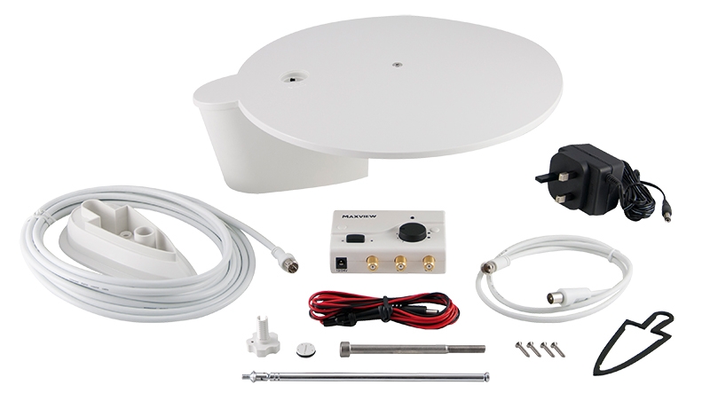 Rozsah dodávky: Montážní základna s 5 m koaxiálním kabelem, teleskopická anténa pro VKV, montážní materiál, 1 m koaxiální kabel, upínací šroub, nastavitelný zesilovač signálu, propojovací kabel 12 V, těsnění.