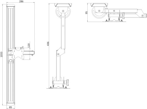 Výška: 990 mm. Minimální vzdálenost od stěny: 95 mm, maximální: 436 mm. Maximální nosnost: 8 kg.