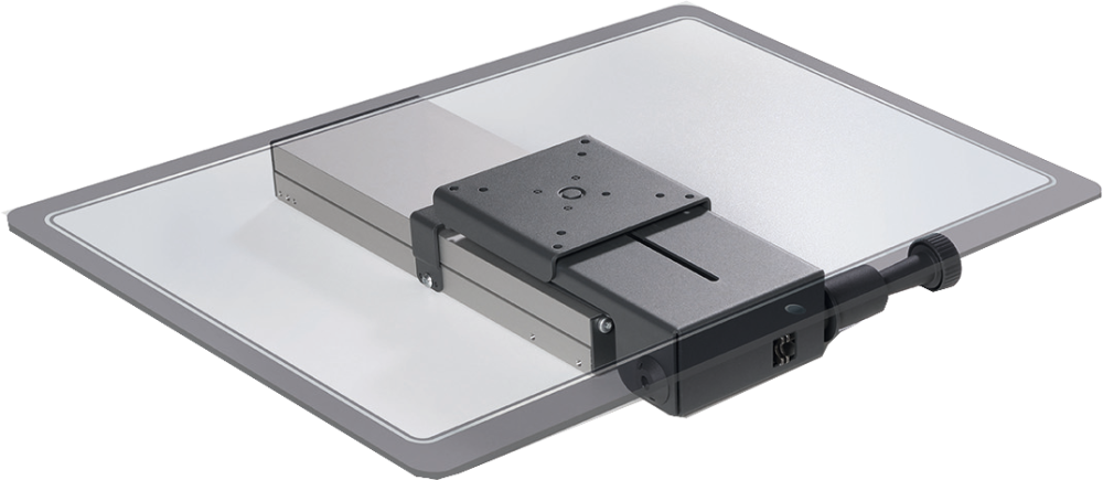 Minimální hloubka police 500 mm. Délka profilu 330 mm. Otočné, výklopné a spouštětelné. Rozměry ve složeném stavu včetně zamykací páky cca 413 x 230 x 70 mm, délka v rozloženém stavu cca 883 mm, plynule vysouvatelné až na 470 mm. Stříbrně eloxované. Maximální nosnost 6,5 kg.