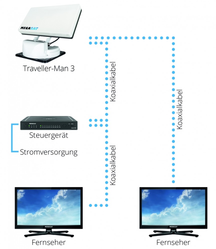 • Traveler-Man 3 je ideálním řešením pro příjem satelitní televize na vašem karavanu nebo obytném voze způsobem, který šetří místo.