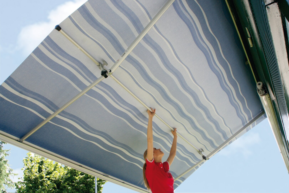 Tato tyč zlepšuje stabilitu markýzy. Jednoduše se napne mezi klouby ramen markýzy. Dvě svislé podpěry zajišťují optimální napnutí látky. Upozornění: Nepoužívejte za velmi silného slunečního záření.