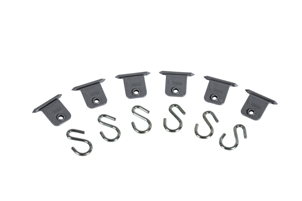 S-háčky s lemováním. Pro připevnění k přednímu panelu pro zavěšení lehkých předmětů. Sada 6 kusů.