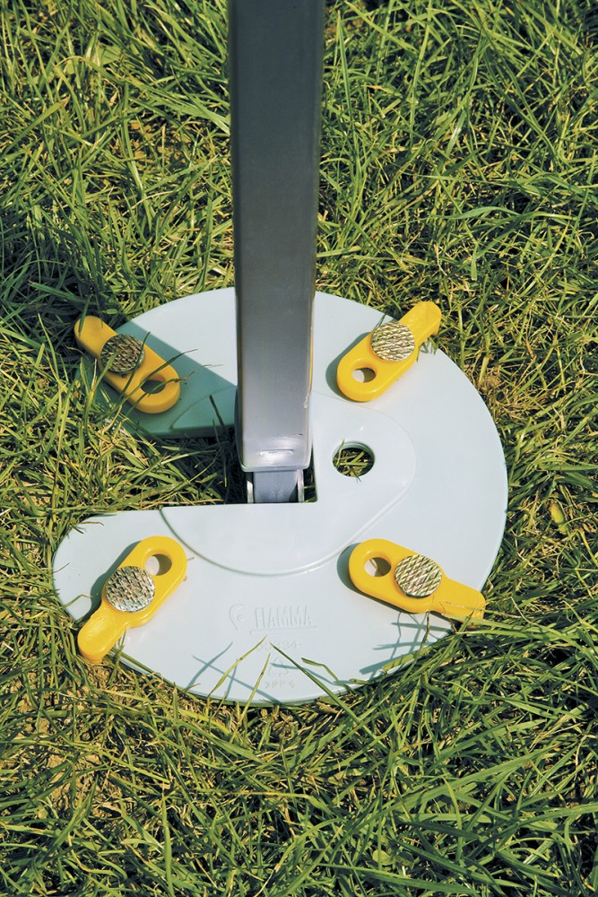 Sada desek pro markýzu. Přídavná zemní kotva pro podpěrné nohy markýzy. Ideální pro zvýšení odolnosti markýzy. Včetně zemních kolíků. Rozměry cca 20 x 20 cm.