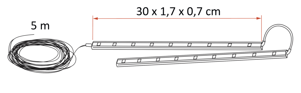 4 COB LED světelné pásky k nalepení na vnitřní stranu skládacích ramen. Markýzu lze i nadále snadno zavřít. Dodává se s 5m elektrickým kabelem pro rychlé připojení. Vhodné pro F45s/L, F80s/L a F65L.