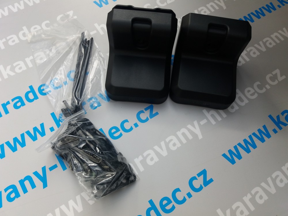 Odolná ocelová konstrukce pro velké zatížení se snadno připevní ke střešním nosičům a markýze. Montuje se kolem nosných tyčí do šířky 90 mm nebo do T-drážek. Uzamykací kapuce chrání před krádeží. Včetně zámků. Včetně upevňovacího nástroje.