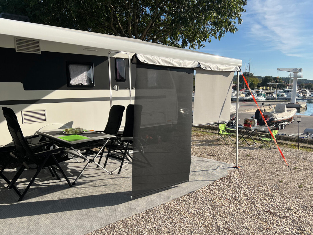 Pro větší ochranu před sluncem lze v kolejnici markýzy pomocí magnetického uzávěru připojit další SunBreak vedle sebe. SunBreak je k dispozici v černé a bílošedé barvě.