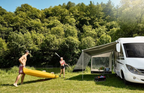 Přední díl pro zajištění soukromí pro markýzy Thule umožňující proudění čerstvého vzduchu, ale chránící před sluncem.