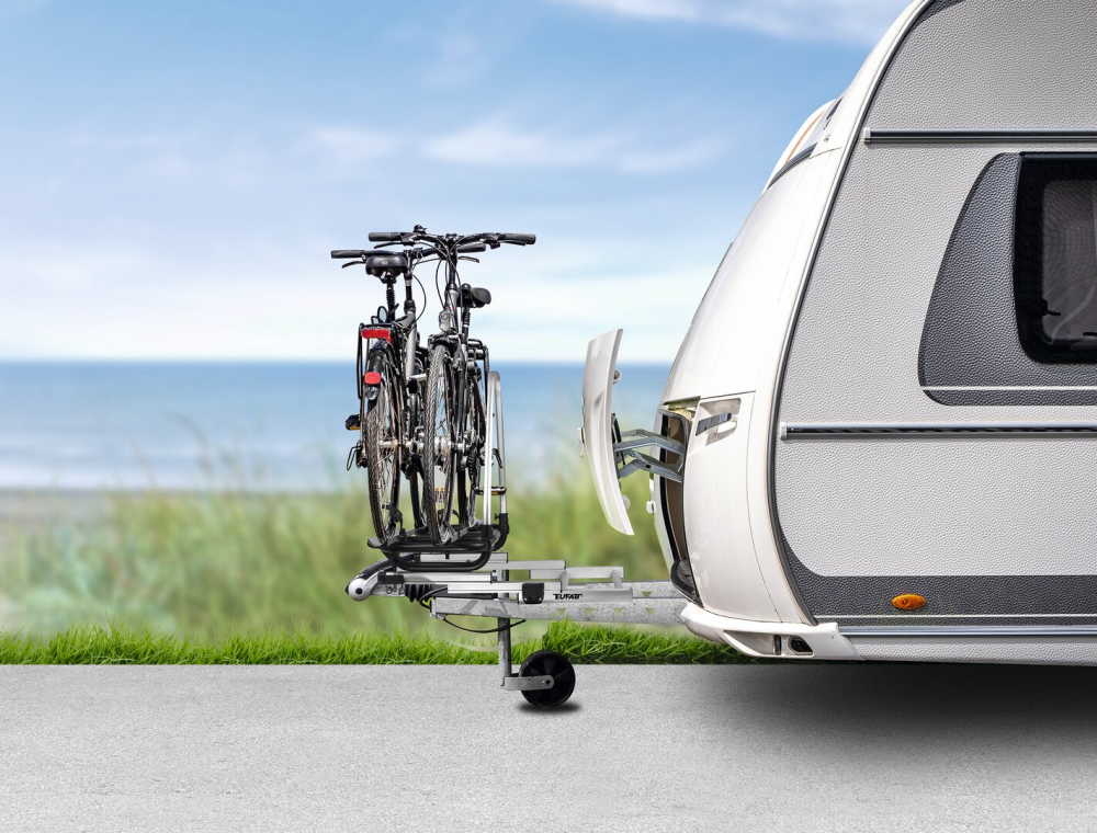 EUFAB BS260 pro 2 kola s extra štíhlým designem je vaším ideálním společníkem, pokud máte rádi pohodlí. Nejenže je obzvláště lehký, ale dá se také snadno vysunout dozadu asi o 50 cm, pokud potřebujete přístup k úložnému prostoru a boxu na lahev. BS260 je kompatibilní s téměř všemi typy ojí karavanů, unese 30 kg na lištu a k oji se připevňuje speciálními montážními svorkami bez vrtání. Je vybaven odnímatelnými a uzamykatelnými držáky rámu, napínacími popruhy a ráčnami, abyste mohli svá kola bezpečně zajistit. Jeho robustní hliníkové profilové lišty umožňují rozvor až 135 cm.