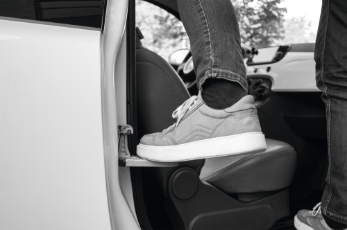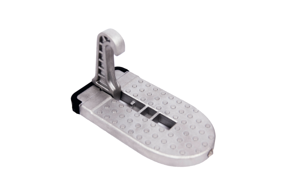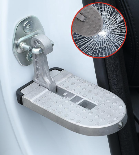 Tím se získá přibližně 50 cm dodatečné výšky schodu. Má protiskluzový profil pro bezpečné uchopení. Ocelový hrot vpředu umožňuje použití i jako bezpečnostní kladivo.