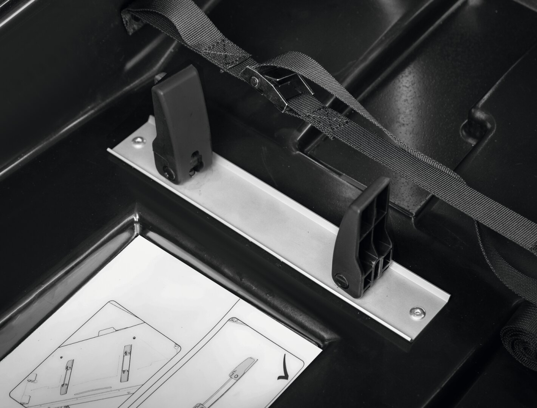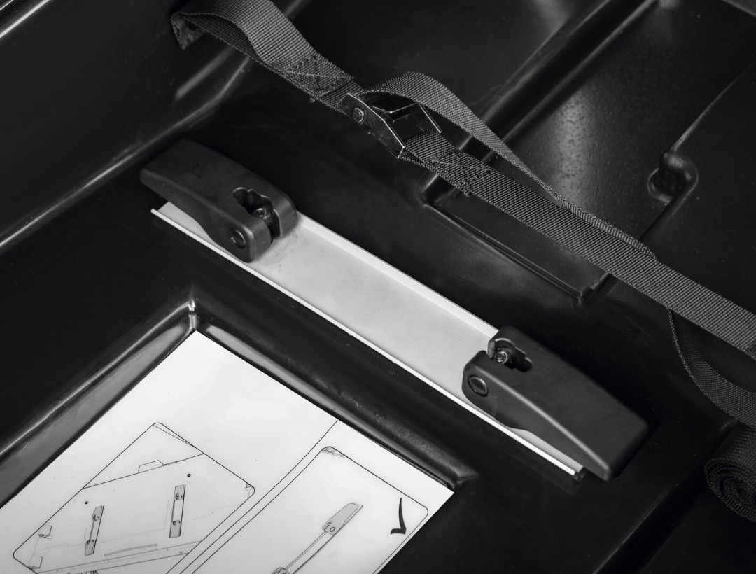 Ultralehký přepravní box s objemem 350 litrů a maximálním užitečným zatížením 50 kg. Ideální pro karimatky, spacáky a lyžařské a snowboardové příslušenství. Box se připevňuje k lištám nosičů řady SD260 a TECDC1 pomocí rychloupínacích uzávěrů; na nosiči není nutná žádná příprava. Dno a víko jsou vyrobeny z robustní tvrdé skořepiny, zatímco boční stěny jsou vyrobeny z měkké a odolné látky. Box je skládací pro kompaktní skladování.