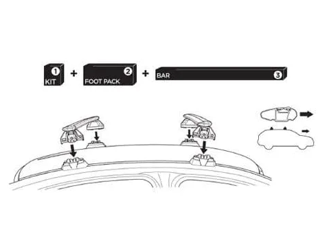 Snadno instalovatelná (a demontovatelná) sada střešního nosiče.