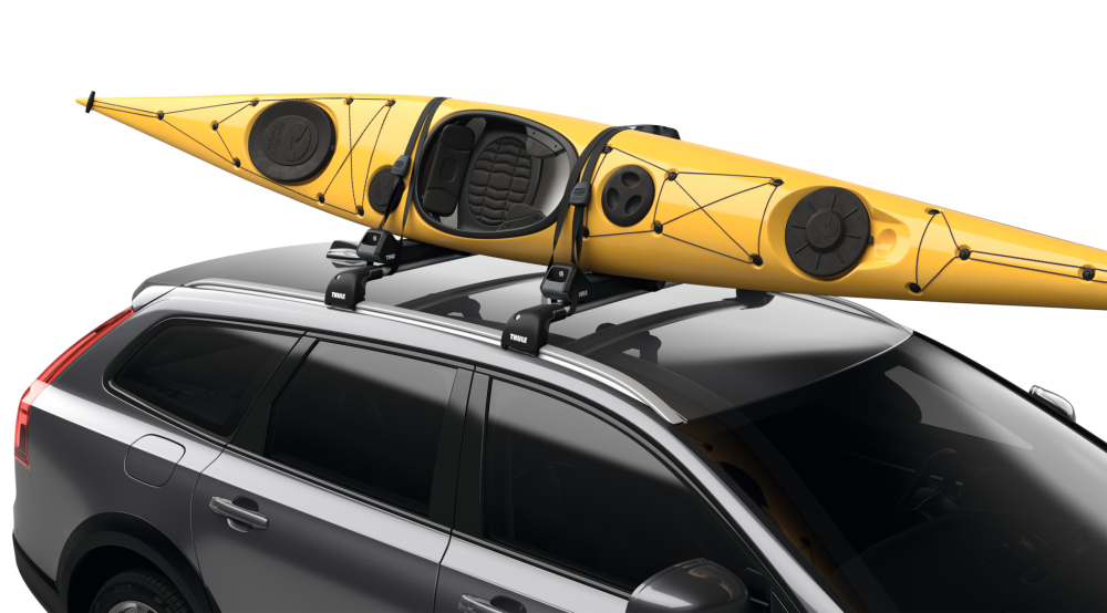 Inovativní nosič kajaků, který nabízí bezpečnost, styl a snadné použití a bezproblémově se integruje se střešními nosiči Thule.