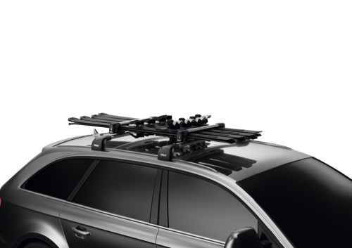 Štíhlý, aerodynamický nosič lyží pro všechny typy lyží a snowboardů.