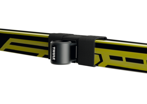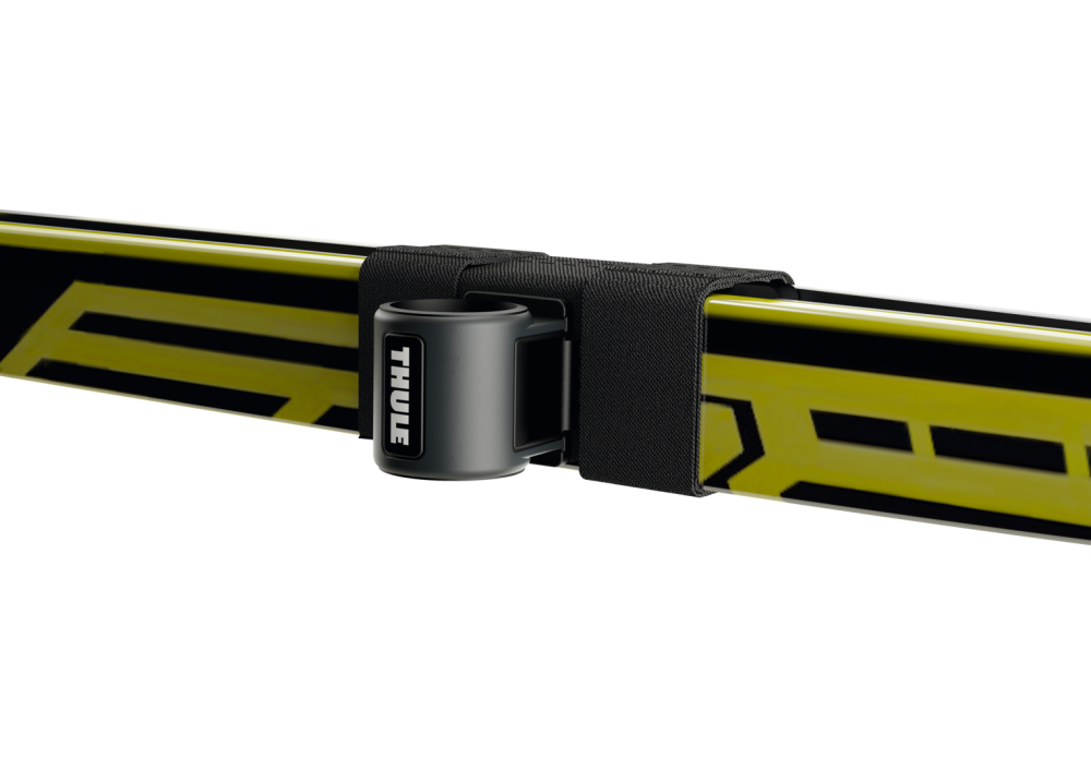 S bezpečnostním zámkem. Lze připevnit na zeď nebo střešní nosič. Pasuje na všechny příčníky nosičů Thule. Tenký materiál se při nepoužívání složí do plochého stavu. Pro jeden pár lyží. Maximální nosnost 7 kg.