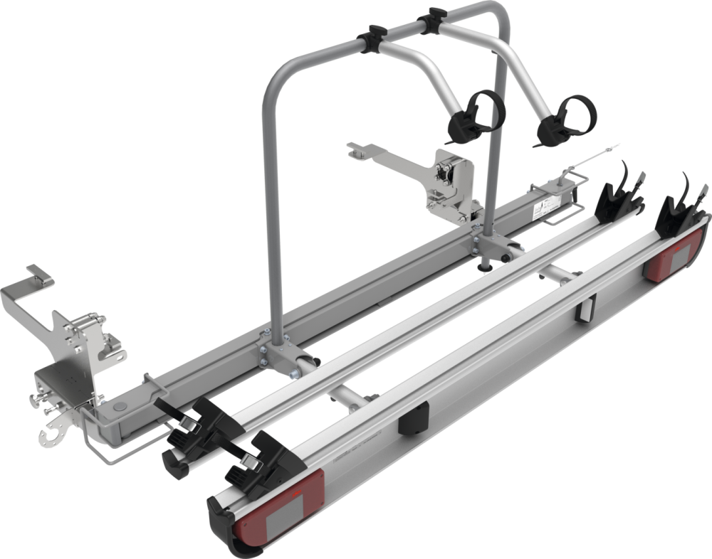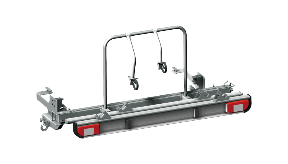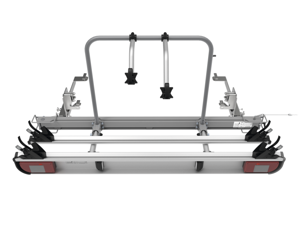 Pro vozidla s rozvorem 345 a 403,5 cm. Základna z oceli/hliníku. 2 kolejnice na kolo o délce 170 cm, každá se 2 kryty kol a 2 napínacími popruhy, 2 upevňovacími drápy.
