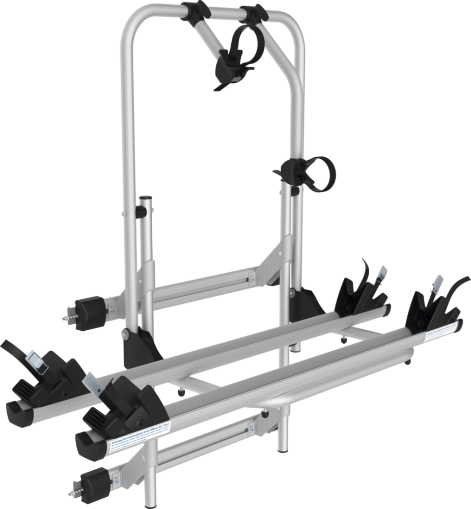 Upevnění na pravé dveře vozidla. Musí být dodatečně připevněn k vozidlu pomocí šroubů nebo Sikaflex (nejsou součástí dodávky). Základní rám z eloxované hliníkové trubky, 2 hliníkové ližiny na kolo každá se 2 skořepinami kol a napínacími popruhy, 2 upevňovací háky, 2 napínací lišty pro montáž na vozidlo. Max. zatížení až 2 jízdních kol.