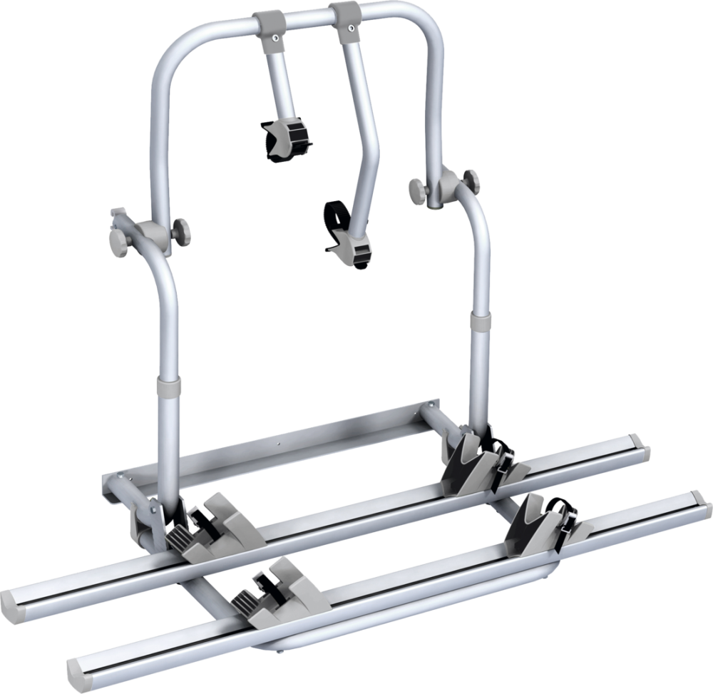 Eloxovaná hliníková trubka ø 30/35 mm, 2 hliníkové kolejnice na kolo o délce 125 cm, každá se 2 kryty kol a napínacími popruhy, 2 upevňovací drápky. Včetně kompletního montážního materiálu. Max. zatížení až 4 jízdních kol (s rozšiřující sadou), vhodné i pro elektrokola (max. 2).