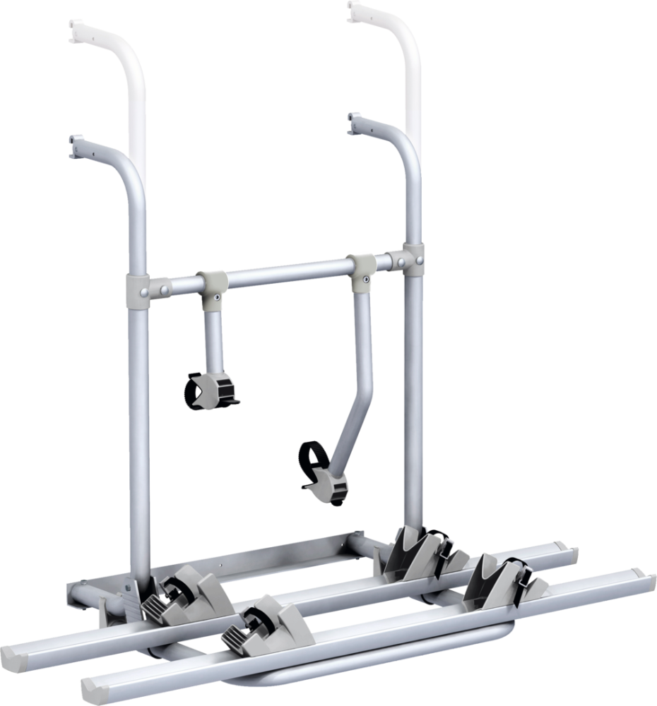 Nosič je pevně přišroubován k zadní stěně vozidla. Eloxovaná hliníková trubka ø 30/35 mm, 2 hliníkové kolejnice na kolo o délce 125 cm, každá se 2 kryty kol a napínacími popruhy, 2 upevňovací drápky. Včetně kompletního montážního materiálu. Max. zatížení až 4 jízdních kol (s rozšiřující sadou), vhodné pro elektrokola nebo elektrokola (max. 2).