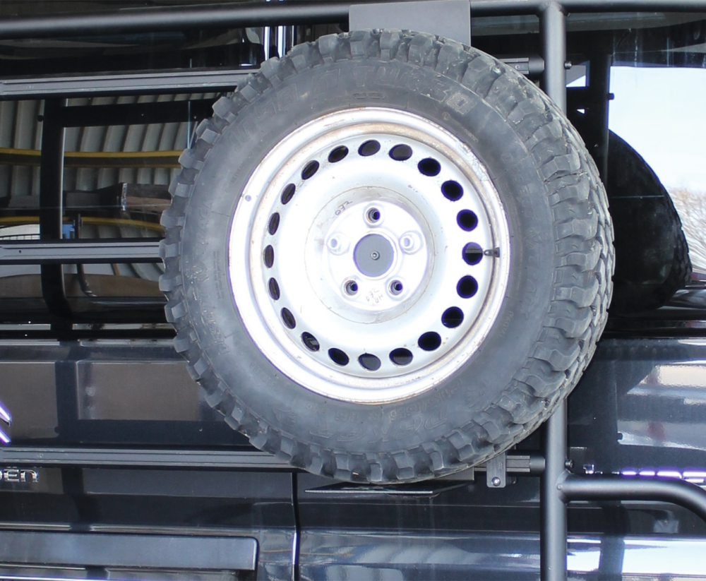 Pro rezervní kola s průměrem rozteče šroubů 118-130 mm, vhodné pro nosič kol Adventure Rack a držák rezervního kola na střešní nosič Adventure Roof.