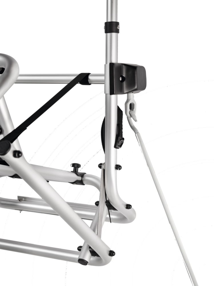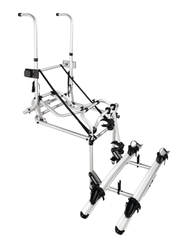 K dispozici s ruční klikou nebo 12V motorem, dosahuje výšky 70 cm a je vybaven odnímatelnými a snadno nastavitelnými držáky rámu kol.