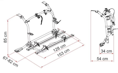 CARRY-BIKE® T5 Pro Deep Black. Nyní kompletně předmontované pro VW T5. Vhodný také pro modely se zvýšenou střechou. Díky kolejnici Rail Plus umožňuje přepravu max. 4 standartních jízdních kol nebo 2 elektrokol. Nosnost: 60kg. Hmotnost: 13kg.