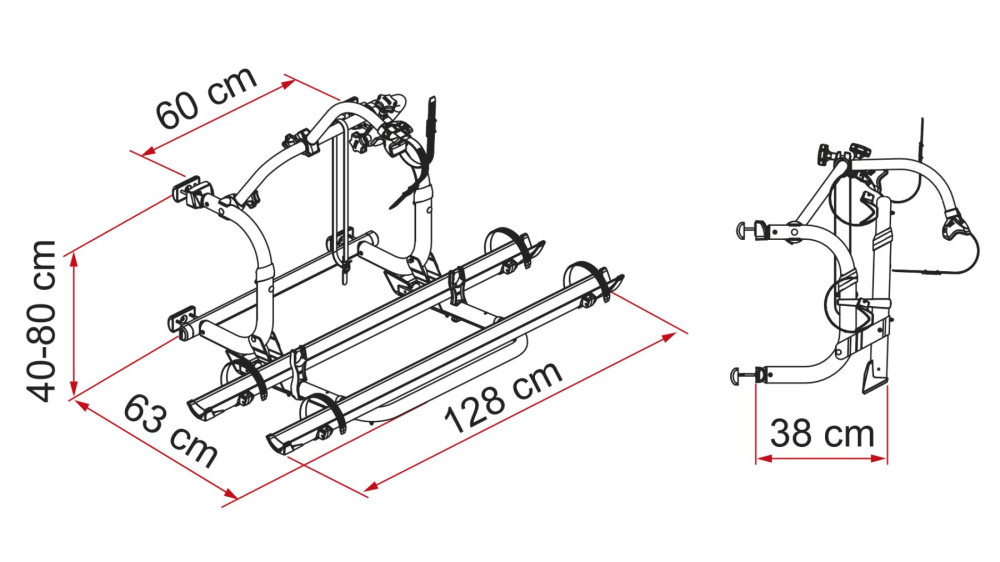 CARRY-BIKE® Pro C Deep Black. Kompaktní výškově nastavitelná hliníková konstrukce od 40 do 80 cm pro vozidla se zadním oknem. Max. pro 4 jizdní kola/2 elektrokola.