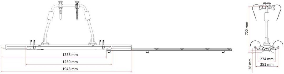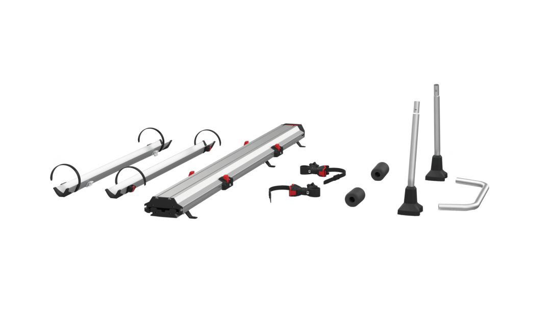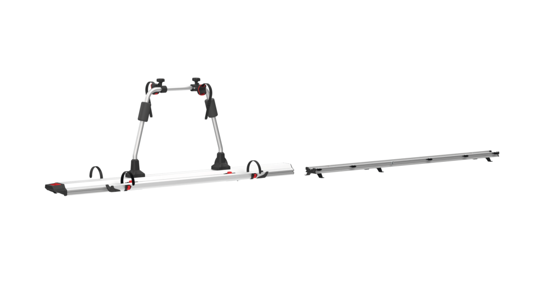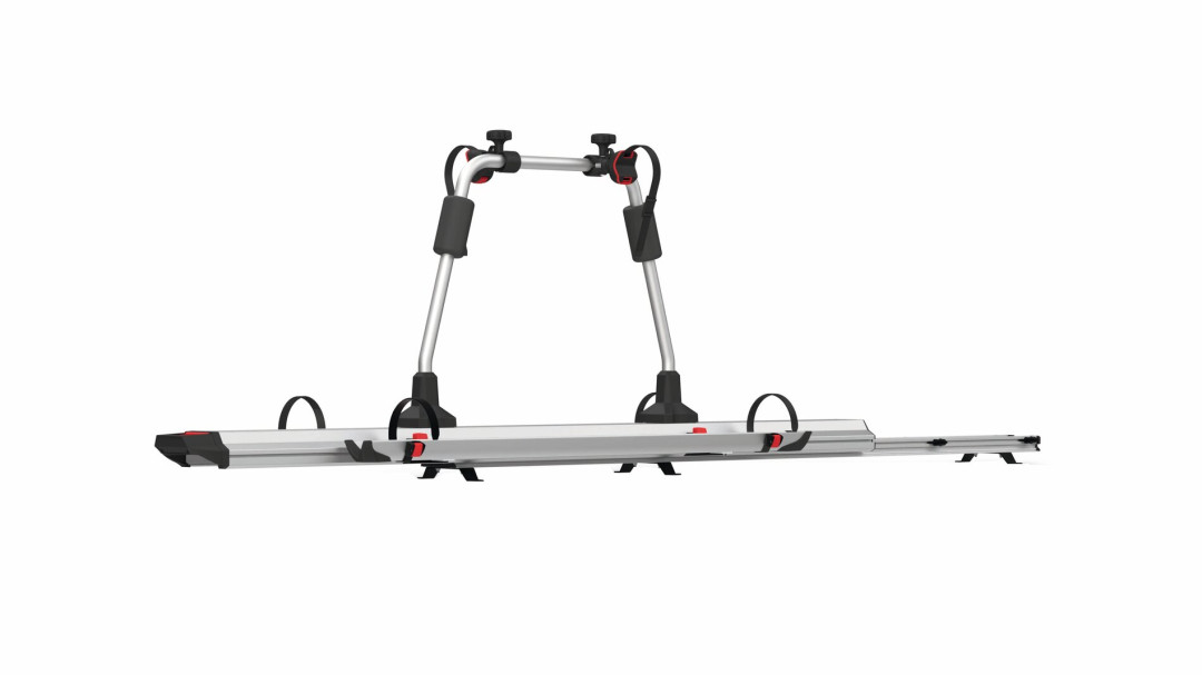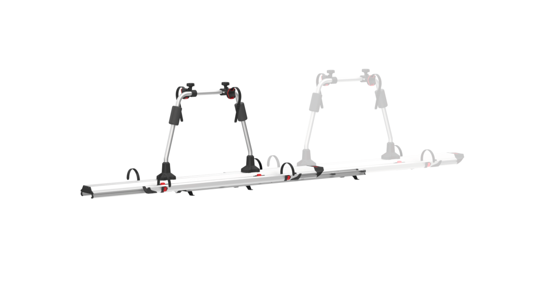 Praktický, rozkládací nosič kol z eloxovaného hliníku do garáže vašeho obytného vozu. Posuvnou část lze vytáhnout a znovu zasunout v opačném směru, což umožňuje vysunutí nosiče na opačnou stranu než je standardní směr. Lze jej rozložit až na 154 cm pro pohodlné a snadné nakládání. Nosič je plně rozebíratelný, čímž se uvolní úložný prostor, když se nepoužívá. Vhodný pro přepravu dvou elektrokol nebo dvou běžných jízdních kol.