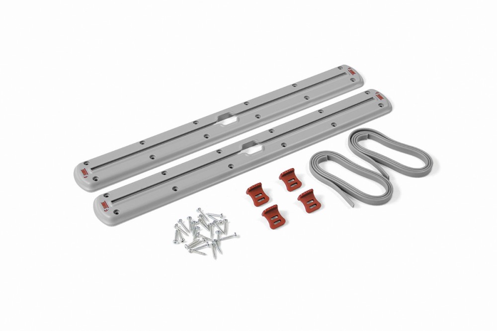 Instalace je velmi jednoduchá, dvě pevné ABS lišty připevněte na zeď pomocí dodaných šroubů, zasuňte háčky do lišty, nastavte napnutí popruhů podle drženého předmětu.