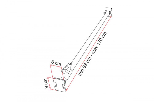 Snadno se zkracuje (minimální délka 20 cm) a prodlužuje až na 170 cm, aby se přizpůsobil různým velikostem úložných boxů v obytném automobilu.