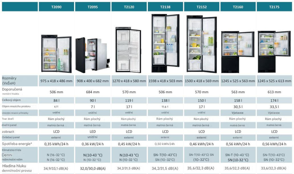 Tato řada s pěti modely nabízí alternativu k některým chladničkám s absorbováním plynu. Řada T2000 se perfektně hodí pro jakýkoli obytný vůz, karavan nebo dodávku.