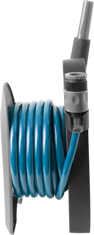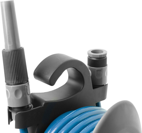 Přenosný hadicový naviják s ⅜" PVC hadicí bezpečnou pro potraviny a 2 rychlospojkami. Rám vyrobený z odolného plastu. Kompaktní, lehký a snadno se přepravuje. Kompletní s rozprašovací tryskou. Vhodné pro různé aplikace.