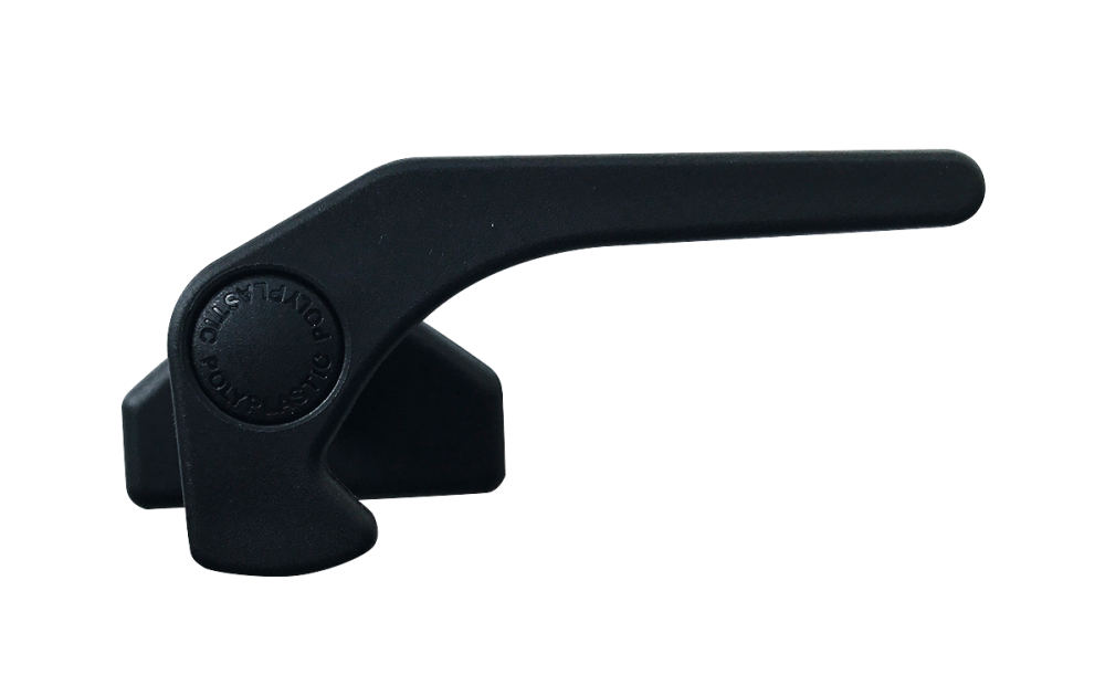 Klička okna Polyfix s aretací. Pro okna Polyplastic. Vyrobeno z černého plastu.