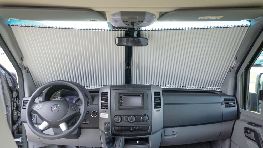 Velká přední a boční okna obytných vozů nabízejí krásný výhled, ale také umožňují zvědavým pohledům nahlédnout dovnitř. A když slunce svítí, interiér se díky velké ploše rychle zahřeje.